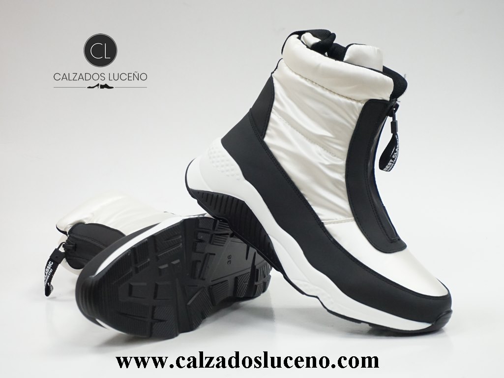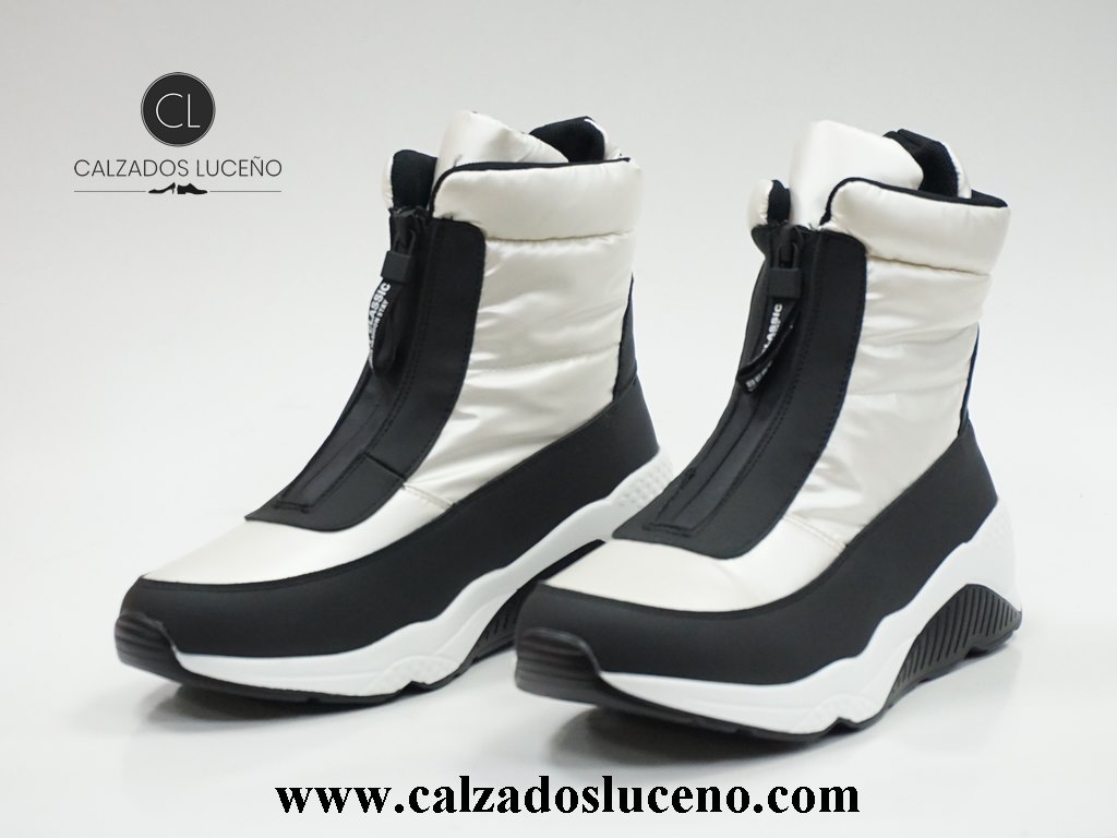 DAngela Bota Mujer Cremallera 22042 Con Un Estilo Descanso Con Cremalleras En El Empeine, Color Negra y Hielo Fabricadas en Anorak y Micro Fibra Con Suela Super Ligera y Antideslizante.