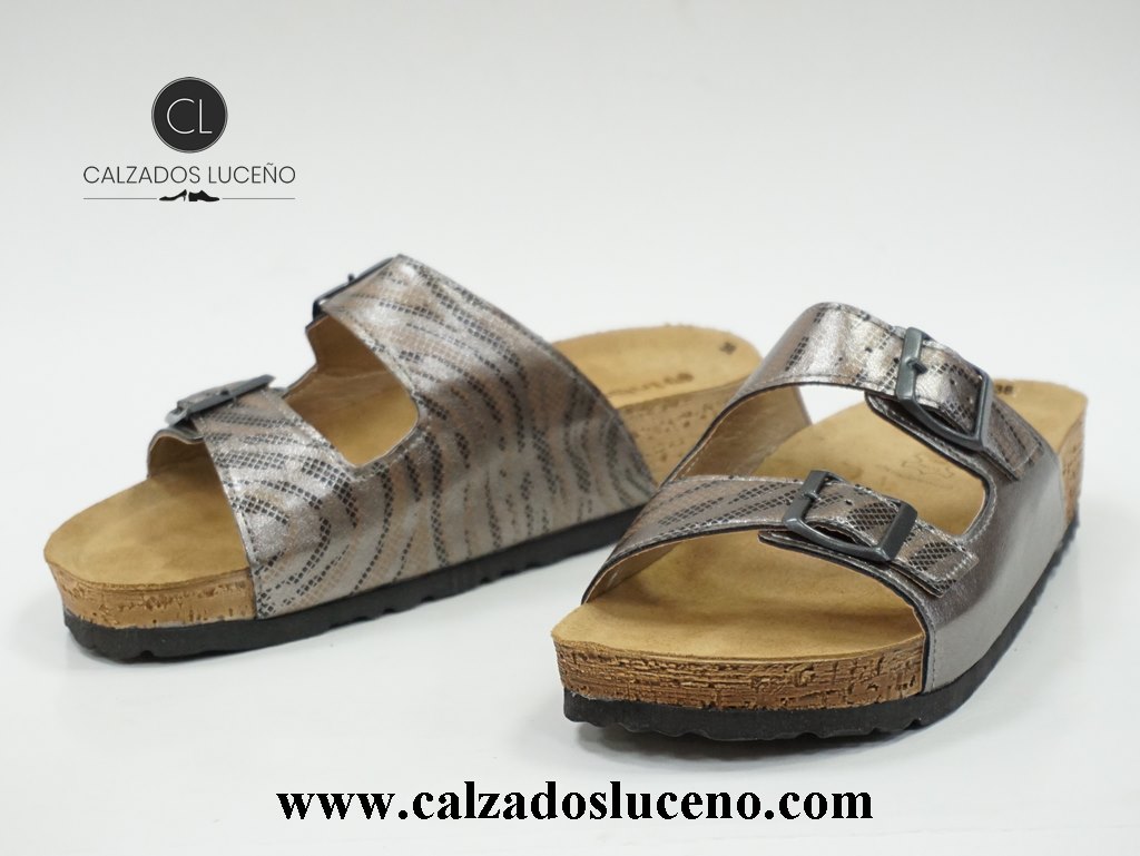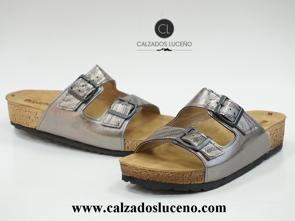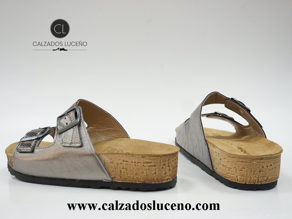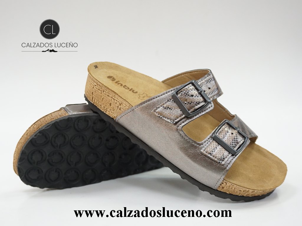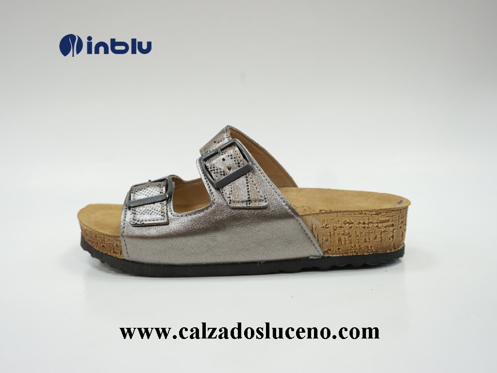 Inblu Zueco Bio Mujer Con Plantilla Piel Con Hebillas en el Empeine Modelo NM000030 Color Plata Vieja, La Suela Es Muy Ligera y Antideslizante.